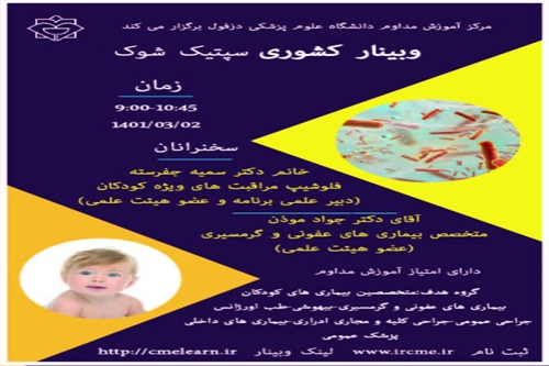 برگزاری وبینار سپتیک شوک مورخ 1401/03/02 ثبت نام در سامانه آموزش مداوم