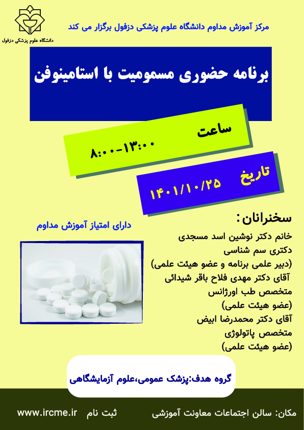 وبینار کشوری مسمومیت با استامینوفن وبینار کشوری مسمومیت با استامینوفن مورخ1401/10/25 برگزار می گردد. ثبت نام در سامانه آموزش مداوم گروه خبری : اطلاعیه ها کد خبر : 13458 کلمات کلیدی