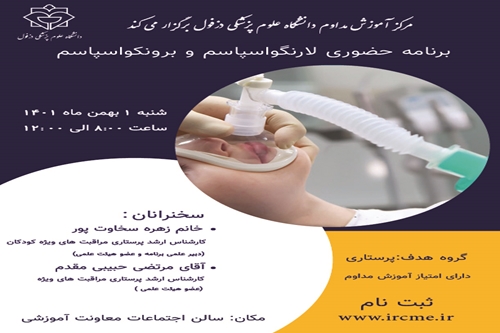 برنامه حضوری لارنگواسپاسم و برونکواسپاسم برنامه حضوری لارنگواسپاسم و برونکواسپاسم مورخ1401/11/01 برگزار می گردد. ثبت نام در سامانه آموزش مداوم گروه خبری : اطلاعیه ها کد خبر : 14475 کلمات کلیدی