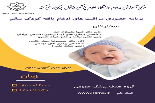 برنامه حضوری مراقبت های ادغام یافته کودک سالم مورخ1401/11/30 برگزار می گردد. ثبت نام در سامانه آموزش مداوم