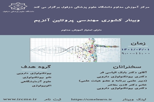 وبینار مهندسی پروتئین آنزیم برگزاری وبینار مهندسی پروتئین آنزیم مورخ 1401/04/01. ثبت نام در سامانه آموزش مداوم دانشگاه علوم پزشکی دزفول گروه خبری : اطلاعیه ها کد خبر : 12654 کلمات کلیدی