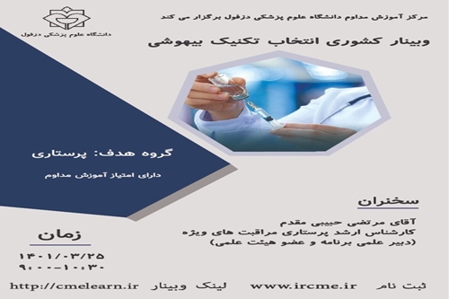 برگزاری وبینار انتخاب تکنیک بیهوشی مورخ 1401/03/25. ثبت نام در سامانه آموزش مداوم دانشگاه علوم پزشکی دزفول